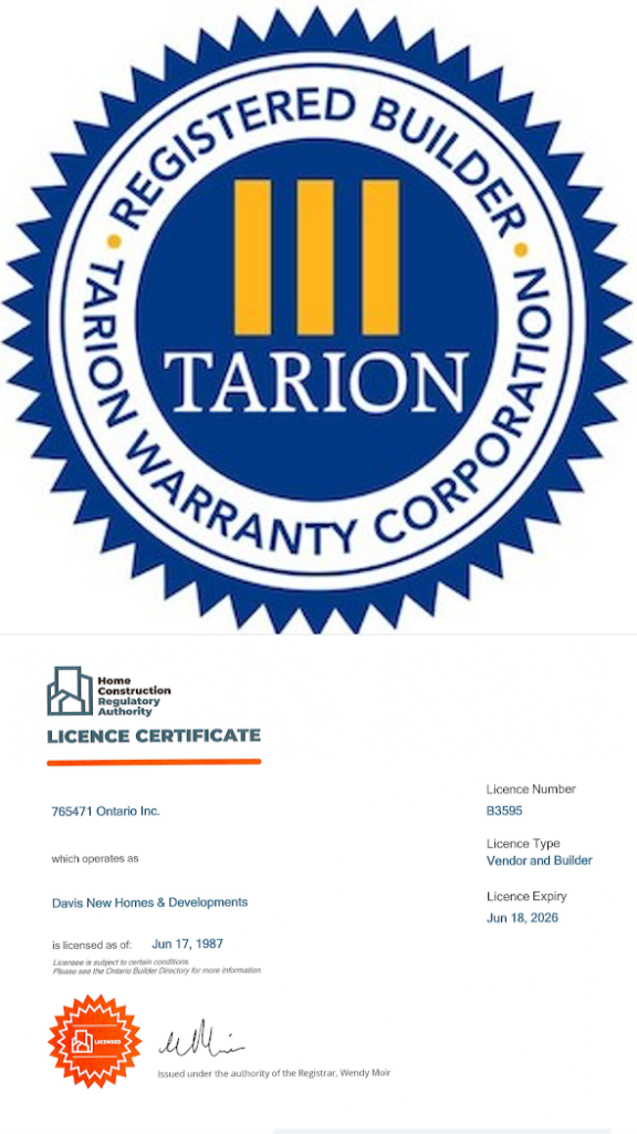 Davis New Homes & Development is proudly licensed by Tarion Warranty Corporation.
